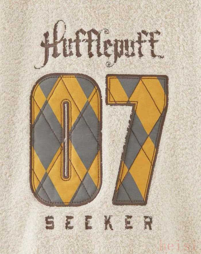 绒感校徽棒球服采用尖毛颗粒绒面料,配有学院刺绣胸章,后背有电影中知名场景“魁地奇比赛”的元素。