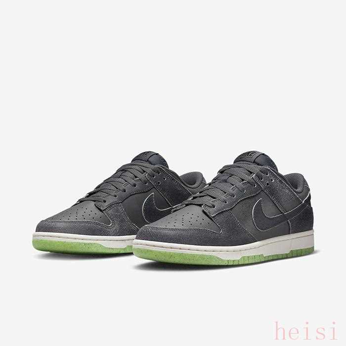 2022万圣节系列包括三种款式——Dunk Low、Blazer Low以及Air Force 1 Mid。有别于过往万圣节系列的传统南瓜色调,此次Nike在Dunk的设计上选以低调的灰色呈现,而材质则选择了皮革与粗糙质感的物料组合,鞋跟的“NIKE”字体则进行了呼应主题的设计。