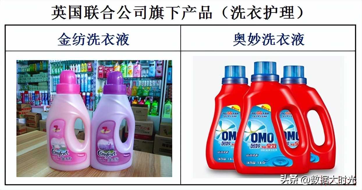 在洗衣护理用品领域,英国联合利华公司旗下产品主要有:奥妙洗衣液、奥妙洗衣粉,金纺洗衣液等。