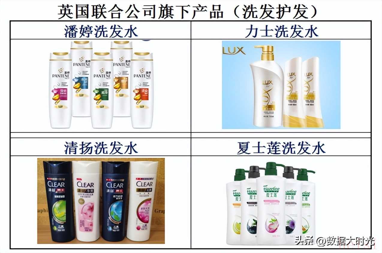 在洗发护发领域,英国联合利华公司旗下产品主要有:潘婷洗发水,力士洗发水,清扬洗发水,夏士莲洗发水,多芬洗发水等。