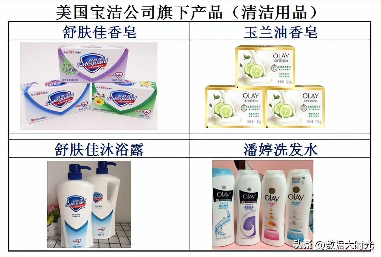 在个人清洁用品领域,美国宝洁公司旗下产品主要有:舒肤佳香皂、玉兰油香皂和沐浴露、舒肤佳沐浴露,卡玫尔等。