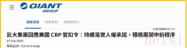 关于“捷安特(Giant)出口美国的所有产品被扣押”的说法,目前"缺乏来自捷安特公司、可靠新闻来源或美国海关与边境保护局(CBP)的官方证实"。这更像是一种未经证实的消息或传闻。