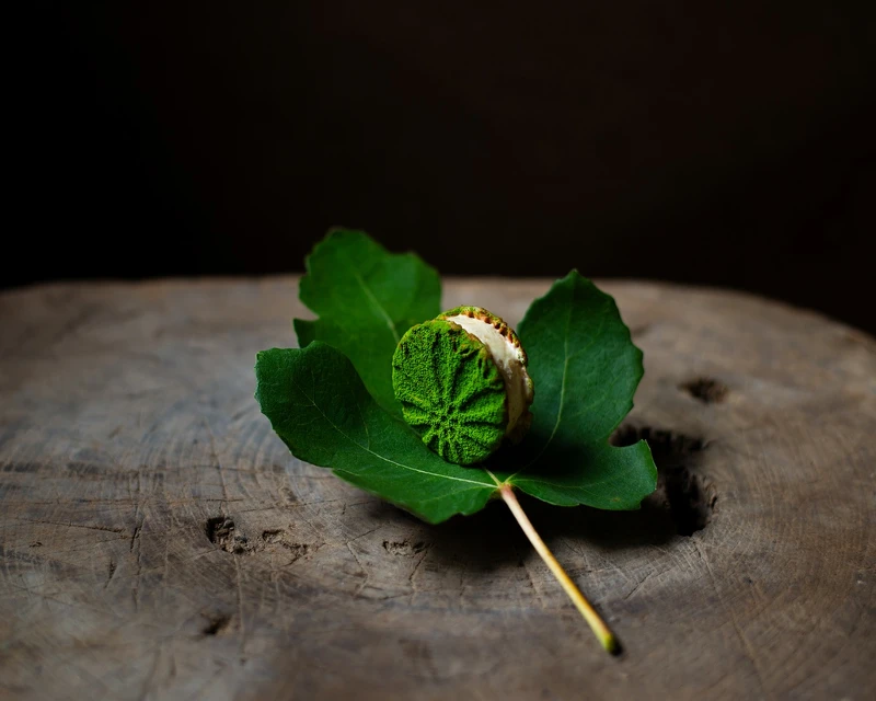 甜点则代表 Matteo 对细节的敏锐。这道料理结合冰(Semifreddo)与铁模饼(Ferratelle),并将少被重视的无花果叶入菜。叶片独特的清香在这里被完整展现,转化为一种轻盈而优雅的口感,让常见食材有了全新的表情。