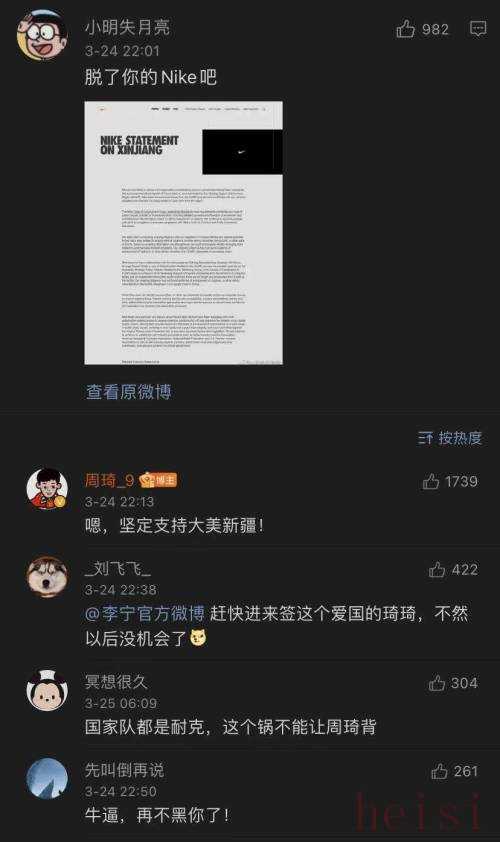 他还在网友“脱了你的耐克吧”评论下留言,“坚定支持大美新疆”。
