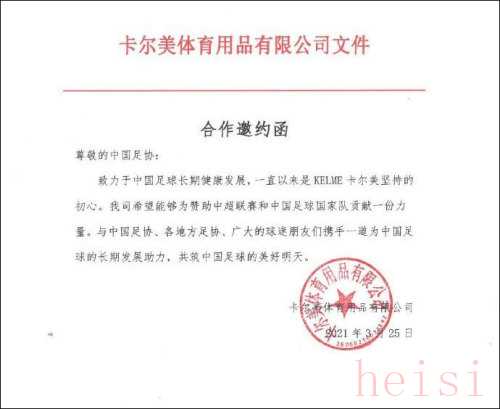 25日,多家国内媒体曝出一张“合作邀约函”,系体育品牌“卡尔美”希望赞助中超赛事,在社交媒体上得到了积极的回应。