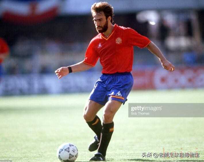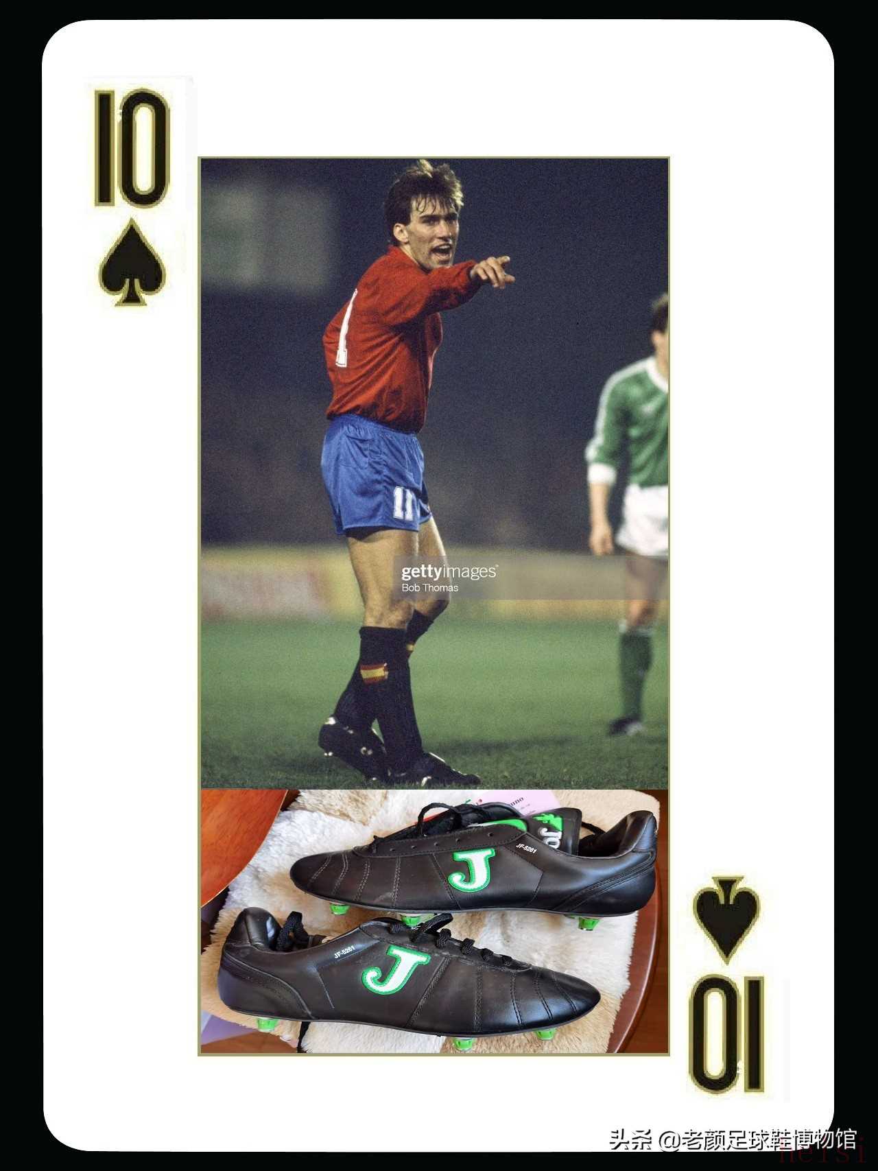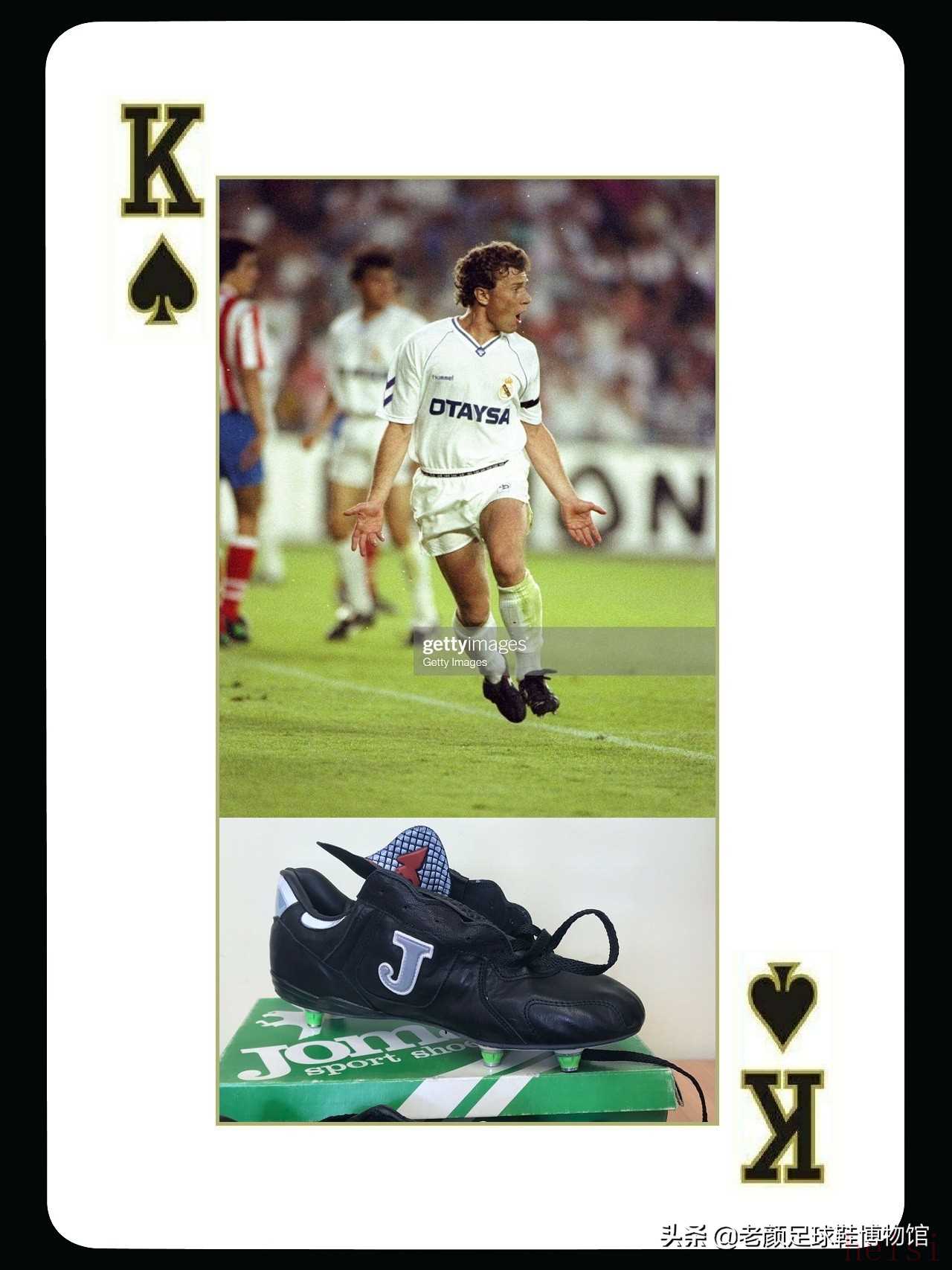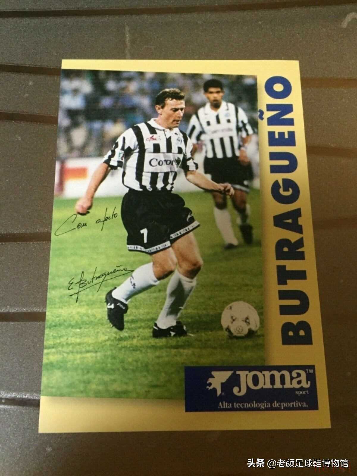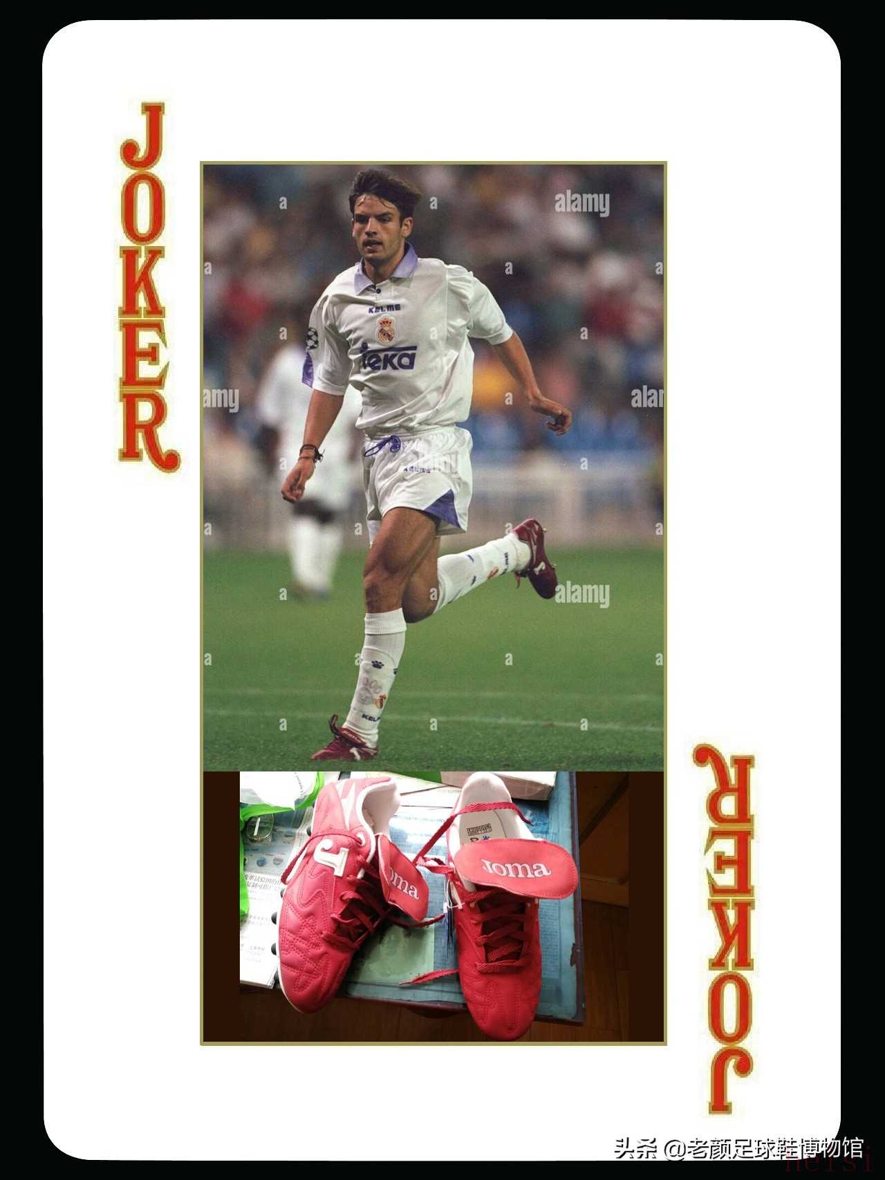 最早接受joma赞助的皇马球员是皇马五鹰之一的巴斯克斯,他是皇马中场的盘带大师,曾经在皇马获得西甲五连冠,1988年,他成为joma第一位签约赞助的球星。1990年他入选西班牙国家队参加了意大利世界杯,世界杯之后,他曾经加盟意甲都灵俱乐部,并且在意甲也踢出了名堂,91-92赛季帮助都灵获得意甲季军。之后他曾经短暂效力法甲巨无霸马赛,但并未获得成功,93年又回到皇马。平心而论,在80年代末,90年代初,joma的球鞋材质一般,鞋跟很厚,说明制鞋的工艺一般,当时球鞋型号都是以数字为代号。