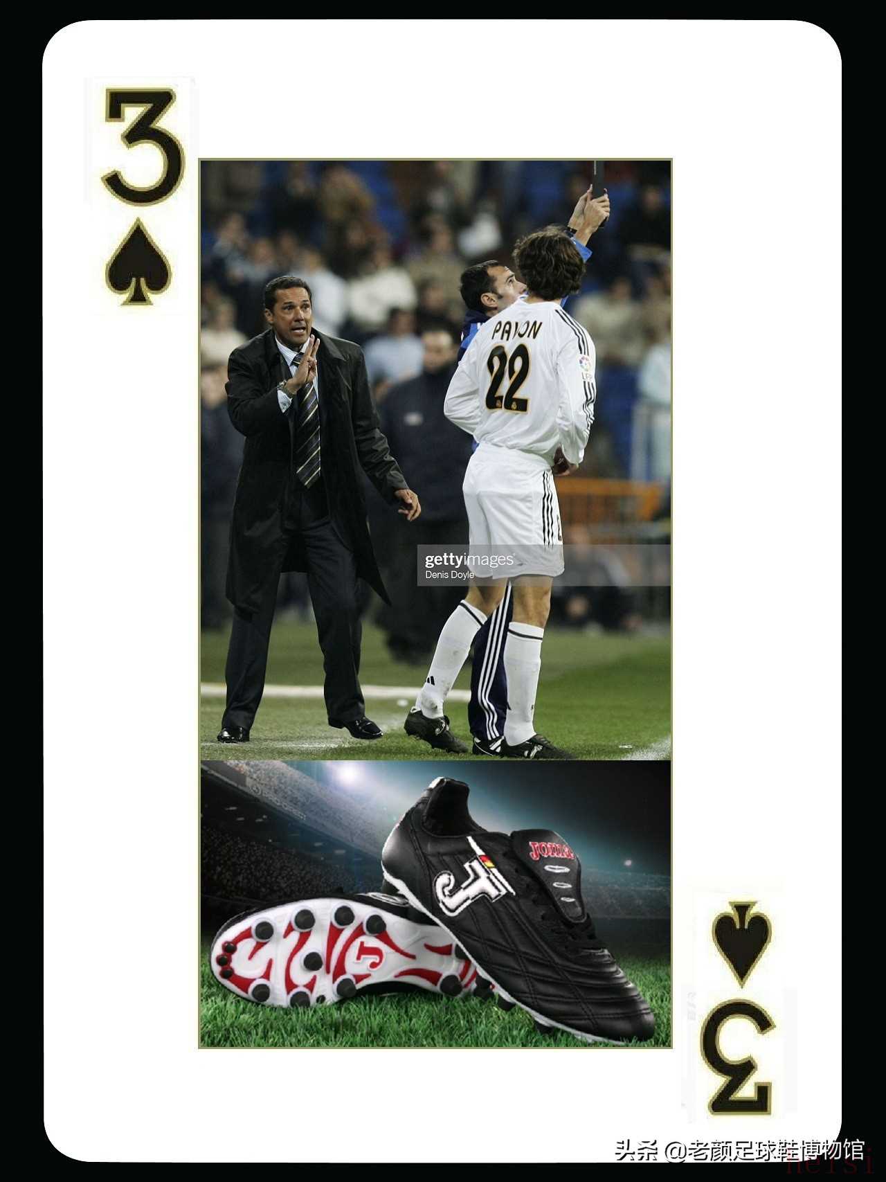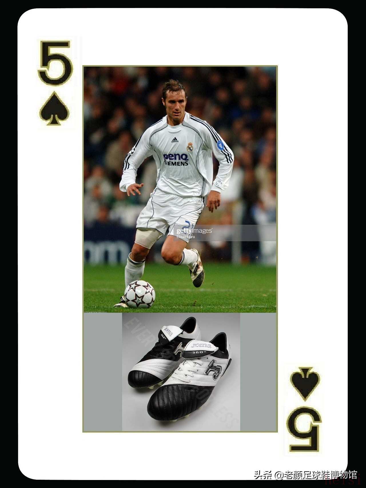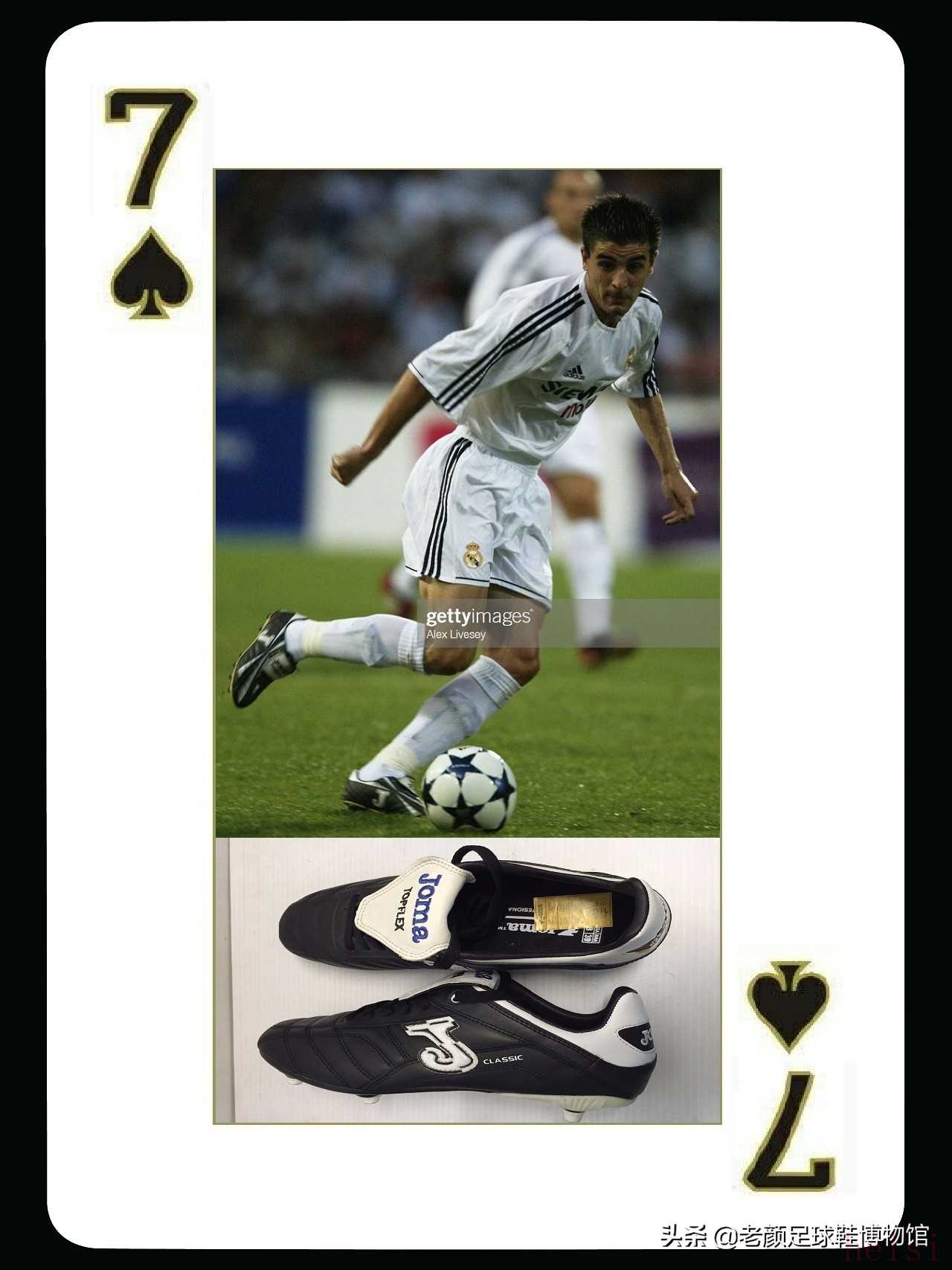 之所以帕文能在皇马混那么久,主要是因为他的搭档很靠谱,擅长防守的后腰埃尔格拉,在2004年也成为joma赞助的球员。1999年他从西班牙人加盟皇马,迅速成为球队主力,埃尔格拉身体素质强悍,防守稳健,头球能力极强。是皇马后防线上最重要的球员,可以打后腰和中卫,和马克莱莱一样,虽然低调平凡,但是作用极大。但是后来皇马后防线坑太大,把他给坑的状态全无,2007年埃尔格拉和皇马关系破裂,转会巴伦西亚,两年后悄然退役。当时他使用的球鞋是joma很著名的Numero 10。这个款的设计有点像nike 904,两只鞋是不对称的。