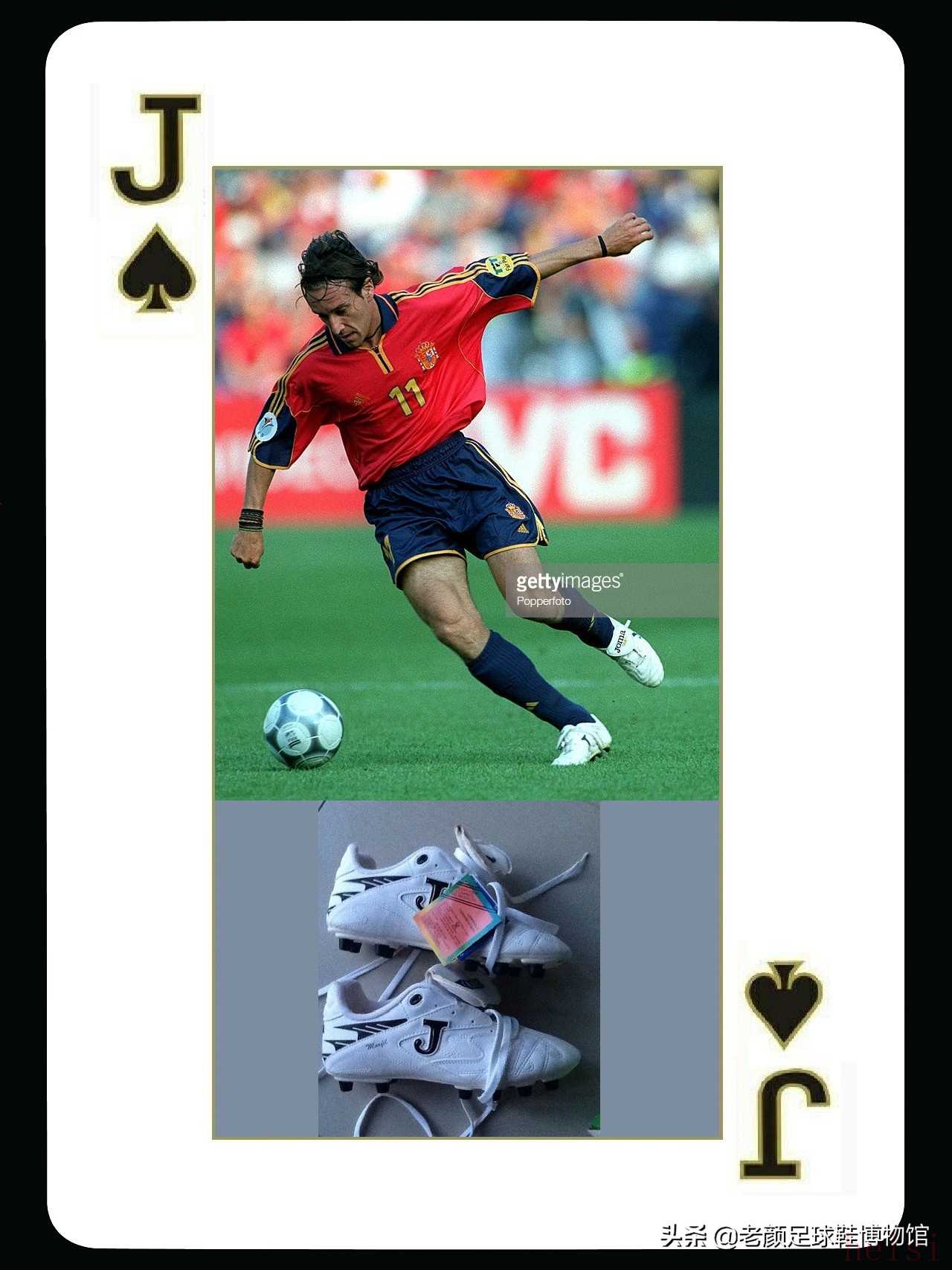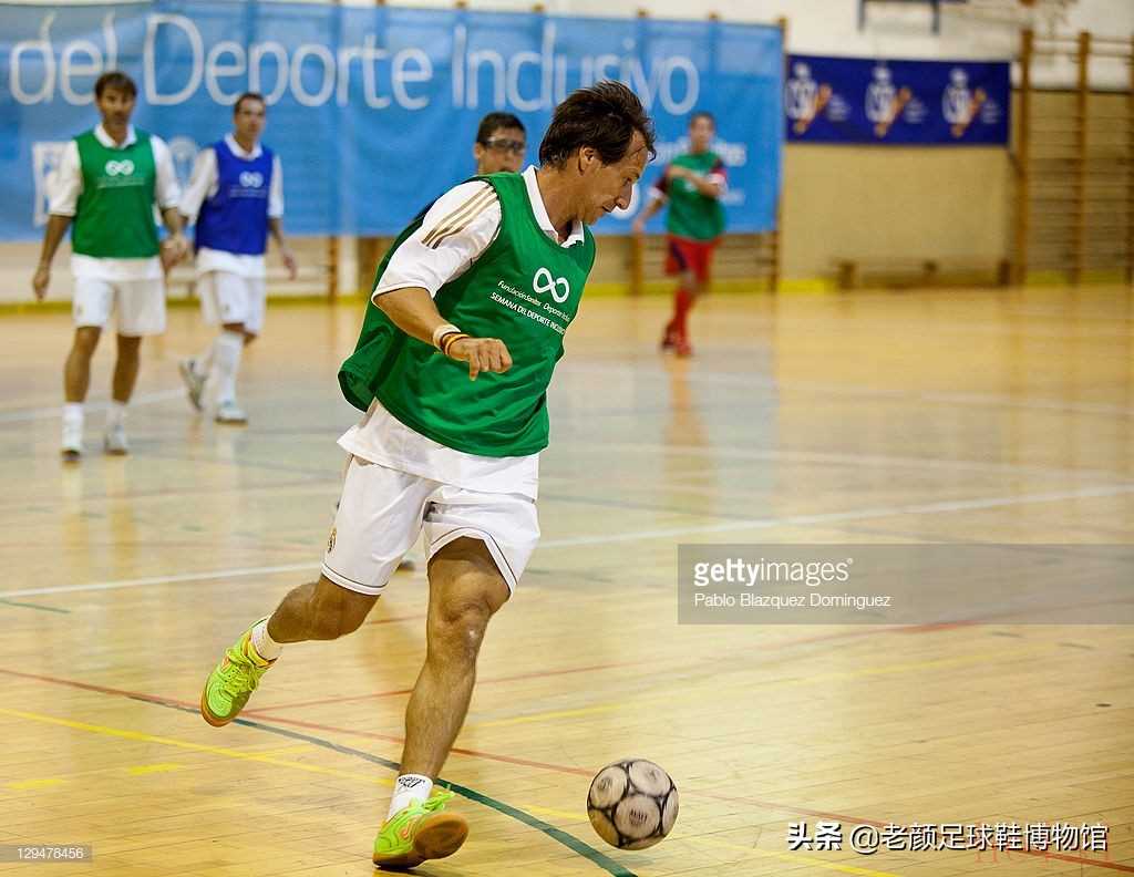说起穿joma球鞋最难忘的球星不能不提下面这位,白鞋剑客阿方索,虽然他最风光的时候在皇家贝蒂斯,但是阿方索出道之初在皇马效力五个赛季,还获得过一次西甲冠军,之后还效力过巴萨。1992年他入选西班牙国奥队获得了奥运会的冠军,当时他使用的球鞋已经是joma的了。在转会贝蒂斯后,阿方索在96-97赛季达到巅峰,联赛打入25球,1998年世界杯前,joma公司的好友打算给阿方索设计一双白色的球鞋。当时使用白色球鞋的球员还非常少,2000年欧锦赛,阿方索在小组赛最后一轮绝杀南斯拉夫,帮助西班牙起死回生,阿方索的白鞋在之后成为了球场最令人难忘的战靴。在退役后,阿方索经常参加室内足球比赛,他也一直穿joma的室内球鞋。