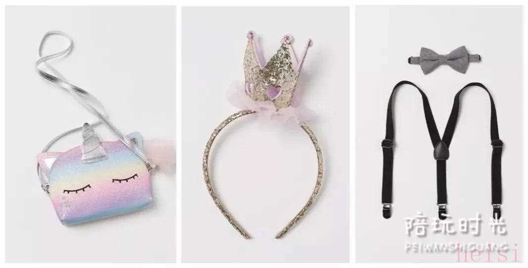 但是,你要是以为H&M只有服装值得入就错了。其实今年它家的小配饰也非常适合宝宝们哦。比如甜美的独角兽包包、高贵的皇冠发箍,就会是女宝们的心头好。而休闲帽和绅士领结则能让男宝变得更加帅气!