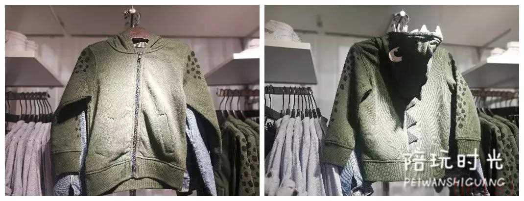 不过,为了让宝宝看起来更可爱,个别卖萌的款式干脆把衣服上的帽子也做成了恐龙的样子。当宝宝穿上这样一件小外套,走到哪儿都会很威风吧!