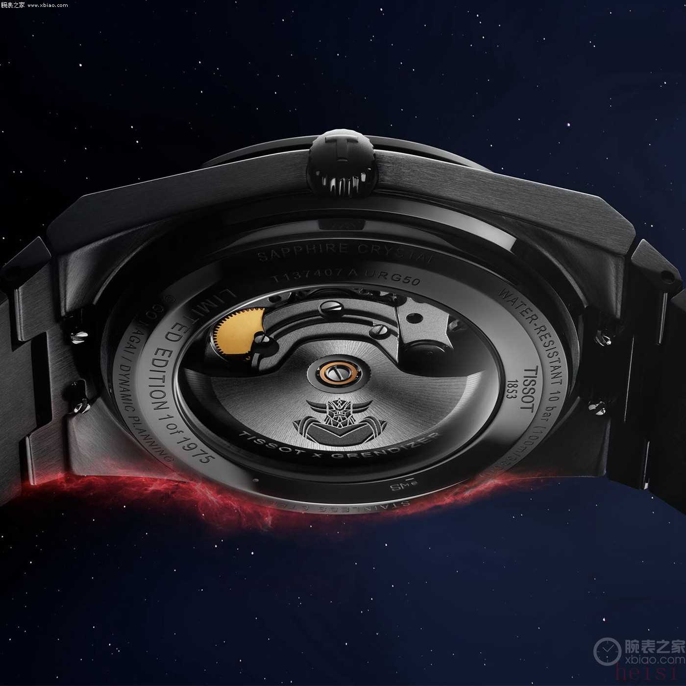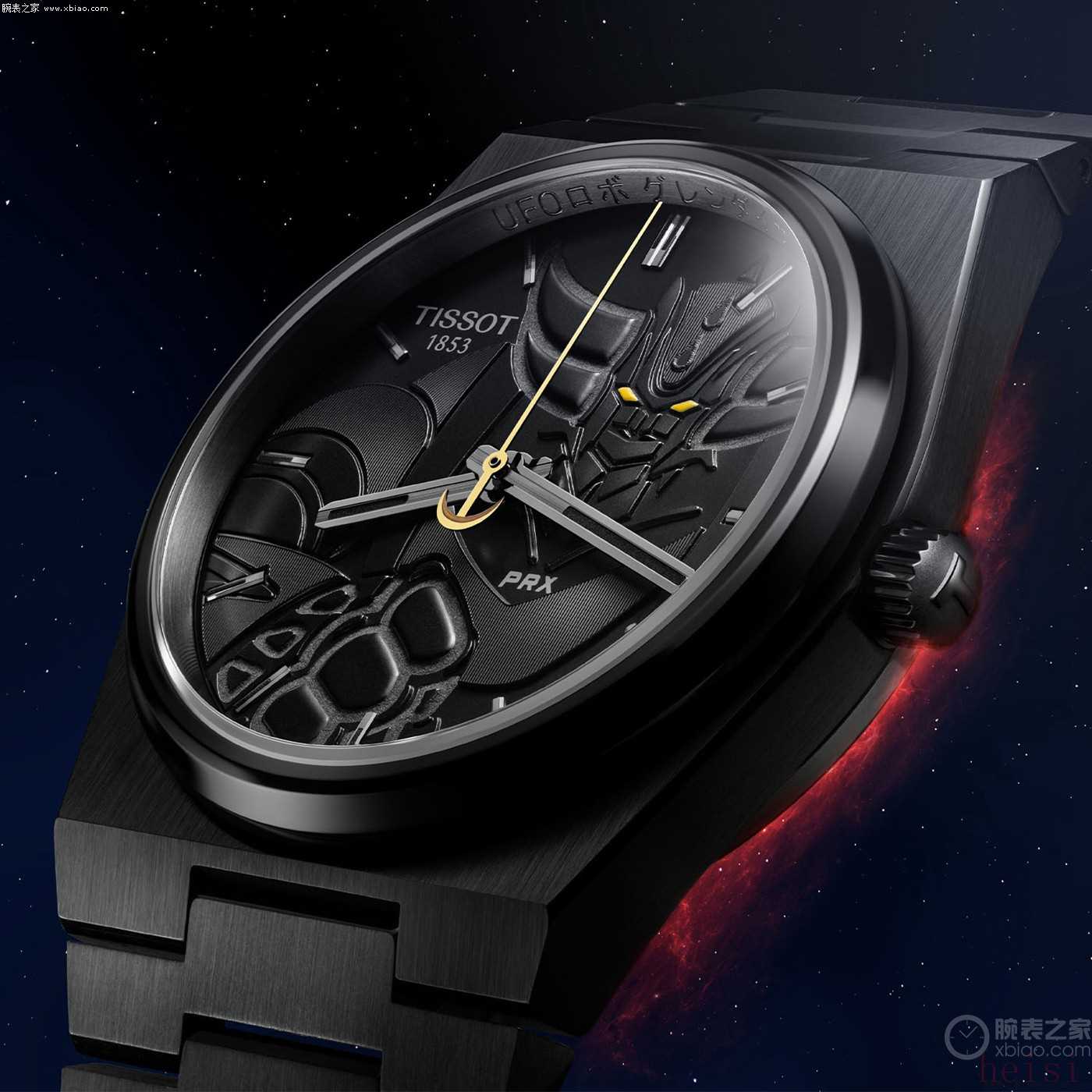2024年,天梭表发布了第一款PRX Powermatic 80 UFO机器人古连泰沙特别版腕表。如今,品牌再次将流行动画文化与瑞士制表工艺相结合,推出PRX古连泰沙50周年特别版黑色PVD腕表(型号:T137.407.33.051.01)。