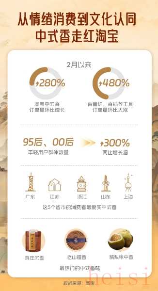 2. "年轻消费者主导:" 95后成为消费主力,这表明中式香不再仅仅是中老年群体的爱好,正在成功年轻化,融入年轻人的生活美学和体验中。