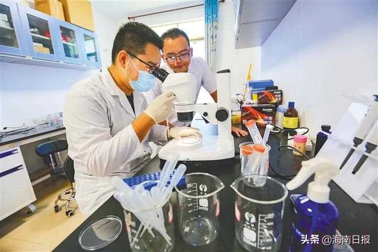 在海南晨海水产有限公司东方感城基地,工作人员在进行实验。海南日报记者 陈元才 摄