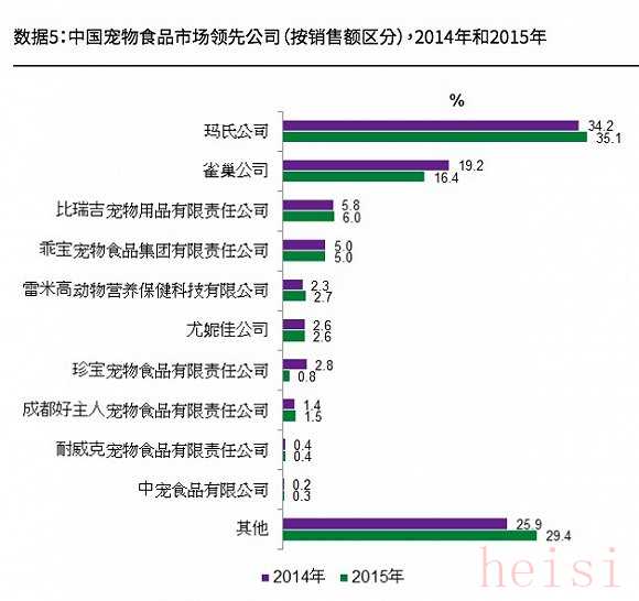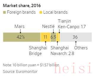 无论是线上宠物医疗保健服务,还是新产品上市,外资宠粮品牌正在中国市场实践的创新举措,都将影响、推动宠物行业的发展。毕竟,外资品牌仍在这一市场上占据很大份额。根据英敏特的报告,玛氏(旗下有皇家、宝路等品牌)和雀巢(旗下有冠能、普瑞纳等品牌)在2015年就占据了国内宠物食品50%以上的市场份额。到2016年,玛氏占到了宠物食品市场份额的42%。