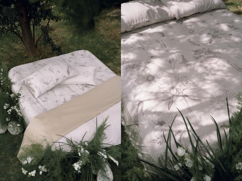今年九⽉,zizz ⾸度携⼿浪花花艺,推出独家限量 100 ⽀奥地利兰精天丝™ 寝饰组,以 Healing Garden《癒花园》为题,将⼿绘花卉、沈稳⼤地⾊调与⾼级材质融入卧室,打造⼀片。