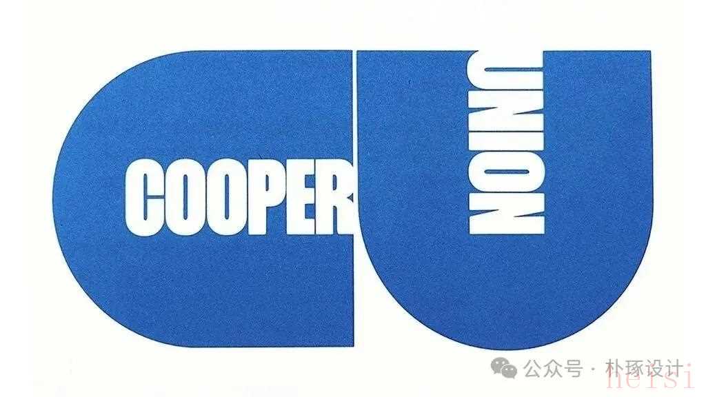 14. Cooper Union(库伯联盟学院)库伯联盟学院的 logo,以 “分层结构与负空间巧思”,成为 “字体设计发挥多重功能” 的标杆。设计师赫伯・卢巴林没有采用传统的 “图形 + 文字” 组合,而是通过两层实心图形的叠加,让文字排版本身成为设计的核心:学院名称 “Cooper Union” 的字母被拆分为两层,上层与下层的留白区域,恰好形成 “C” 和 “U” 两个首字母的轮廓,既传递出学院名称信息,又通过负空间设计增添了层次感与记忆点。这种设计的精妙之处在于 “互动性”:观众需要略微观察,才能发现负空间中的字母,而这种 “主动探索” 的过程,恰好契合学院 “注重细节、鼓励思考” 的教育理念。logo 无需额外装饰,仅通过文字的排版与分层,便实现了 “信息传递” 与 “设计美感” 的双重目标 —— 它大胆而坚定,线条简洁却充满张力,越深入品味,越能感受到其中的智慧,成为教育机构标识设计中 “以简驭繁” 的经典。