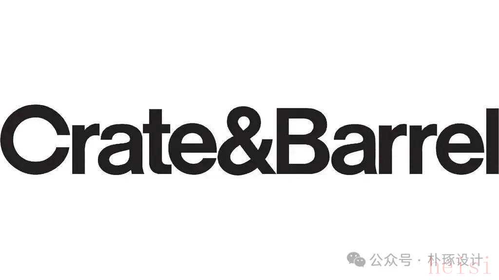 13. Crate & Barrel(克拉特 & 巴雷尔家居)克拉特 & 巴雷尔家居的 logo,是美国零售行业 “长期传承且无需更改” 的典范 —— 采用 Helvetica 粗体设计的字标,数十年未因设计潮流变化而调整,却始终适配品牌的视觉体系,成为 “现代字体应用于零售品牌” 的标杆。logo 的价值不仅在于 “简洁”,更在于 “与品牌基因的深度契合”:名称中的 “Crate(木箱)” 与 “Barrel(木桶)”,源自品牌创始人 “将进口商品用木箱、木桶运入美国” 的创业故事,而 Helvetica 粗体的 “坚实、可靠” 质感,恰好呼应了 “木箱、木桶” 的耐用属性,传递出品牌 “简约、实用、高品质” 的家居定位。从商品标签到门店招牌,从纸质宣传册到数字界面,这款字标始终保持稳定的识别性 —— 消费者看到 Helvetica 粗体的品牌名称,便能瞬间联想到其简约的家居风格与可靠的产品品质,证明 “合适的字体选择,本身就是最好的设计”。