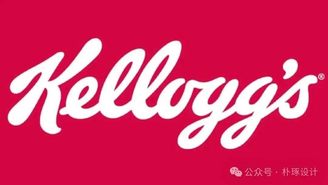 6. Kellogg’s(家乐氏)自 1907 年沿用至今的家乐氏手写体 logo,是 “品牌传承与场景适配” 的完美结合。logo 字体源自品牌创始人 W.K. Kellogg 的亲笔签名,流畅的草写字形既传递出 “温暖、亲切” 的家庭气质,又暗合 “早餐场景” 的温馨感 —— 笔画的圆润弧度,仿佛 “牛奶融入麦片” 的柔和动态,让消费者看到字体,便不自觉联想到清晨的家庭餐桌。设计的灵活性同样值得称道:字标中的撇号常被设计成 “牛奶滴” 形态,融入品牌视觉构图与宣传文案,既强化了 “早餐品类” 属性,又增添了趣味性;即便在现代包装、数字广告与线下门店中,这款手写体也无需大幅调整,就能与新的视觉元素和谐共存。在极简设计主导的当下,它反而因 “个性化” 更显珍贵 —— 它没有追求 “标准化”,却通过字体的温度感,让品牌始终保持 “贴近家庭” 的定位,成为 “百年品牌依托视觉传承保持活力” 的典范。