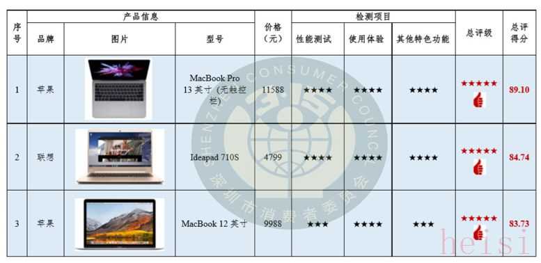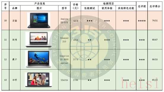 深圳市消费者委员会根据ICRT比较试验产品数据共享,结合国内消费者的购买热点,选取了在国内知名度高且较易通过商超或网络平台购买的13款不同品牌及型号的笔记本电脑;