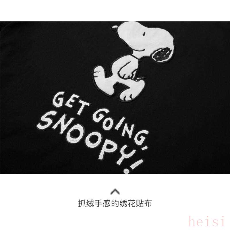 T恤系列方面,整体采用更适合夏天的舒适透气的面料,衣服上还有抓绒手感的可爱贴布,简单又不失俏皮,伸手一摸就像碰到真正的史努比一般,精致细腻又可爱。