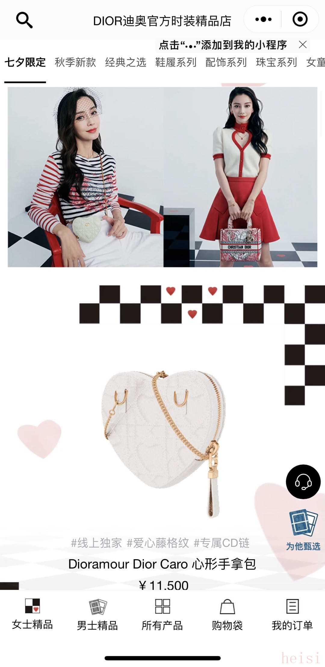 其中,古驰还沿用了上一季七夕系列中首现的苹果印花元素,将苹果爱心打造成了七夕限定系列的专属元素。而迪奥则是以梦幻童话为元素推出了全品类的DIORAMOUR限定系列,不仅涵盖了包袋、首饰等热销单品,还有成衣、鞋履和家居产品。