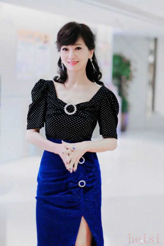 65岁的赵雅芝也紧跟潮流,黑色丝绒面料显得高级,泡泡袖+波点的搭配则是减龄可爱又复古,下半身同样配上蓝色丝绒开叉半裙,性感又撩人,泡泡袖和波点综合了面料带来的成熟感。