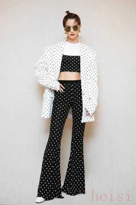 李宇春这套巴尔曼2020春夏系列波点套装look就更复古了!过脚踝的喇叭裤和虽然宽松但版型很正的西装外套有8,90年代复古disco的味道,再加上波点元素,大墨镜,和大耳环,妥妥的是帅气的复古摩登风。