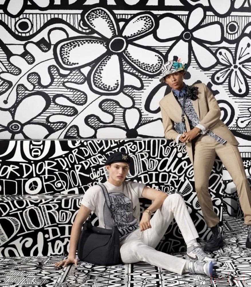 而与Stussy联名的2020秋冬男装系列,则是把马克笔手绘的如同海浪般的不同字体的 dior 名称和可爱花朵印在衬衣和各种包袋配件上,以街头涂鸦风格淋漓展现对现代艺术的热爱与对自由精神的礼赞。并且Dior 也在近期为这次跨界合作制作了许多宣传大片,向街头教父Shawn Stussy 致敬。