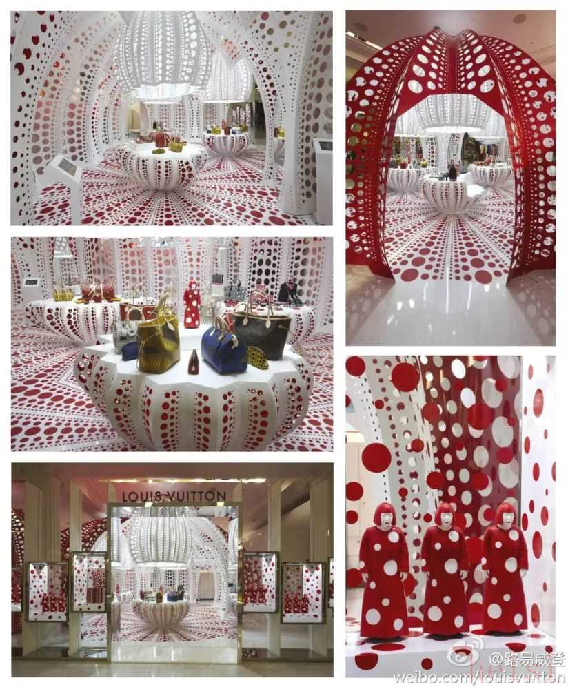 草间弥生不仅是将波点作为自己创作灵感来用于艺术画作,也和品牌联名推出时尚单品。其中之一的经典合作莫过于与 LV 的跨界联名。该系列把草间弥生的波点元素融入到极致,将 LV 的精彩设计与她大红大黄的波点图案完美结合,连旗舰店铺也被打造出充满视觉冲击的波点天地。