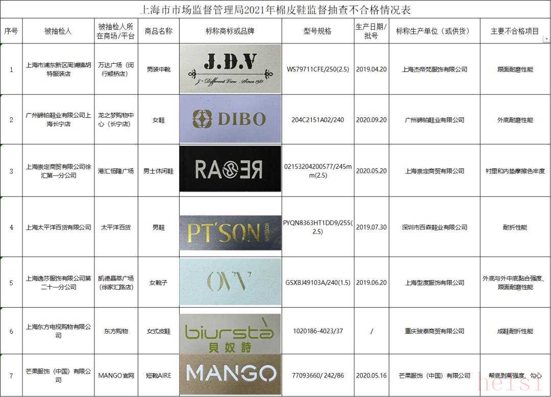 通告称,近期上海市市场监督管理局对港汇恒隆广场等14家商场和MANGO官网等8家网络交易平台销售的60批次皮鞋进行了抽检,发现7批次不合格,不合格检出率为11.7%。