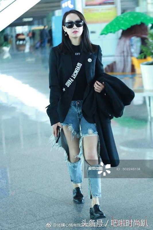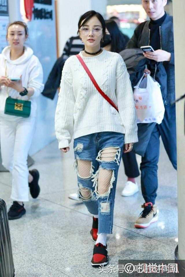 昨天,时尚icon宋茜就现身机场了,她身上穿的这件破洞裤,真是让吧啦惊呆了…