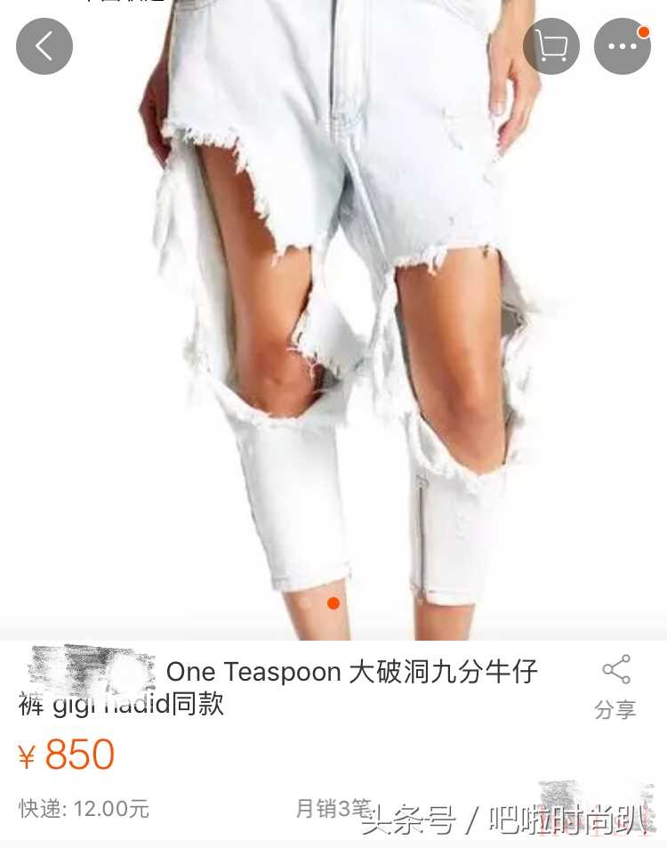 其实,这条破洞牛仔裤之前wuli超模Gigi hadid也穿过~v作为欧美的带货女王,不知道宋茜是不是受了Gigi的影响才穿了这条超破洞牛仔裤~