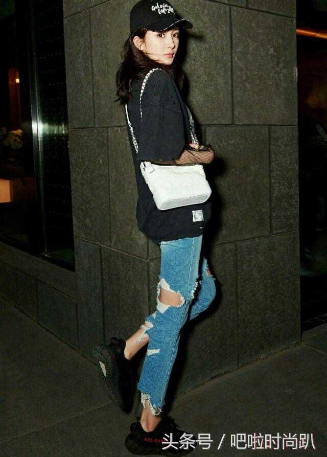 不过,说到破洞牛仔裤,直接wuli大美幂,杨幂最近还穿了一条双面破洞牛仔裤,正面看就是正常的破了两个洞,转过身,裤子后面还有破洞,也是特别呀~