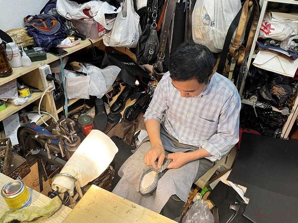 吴师傅在修鞋。