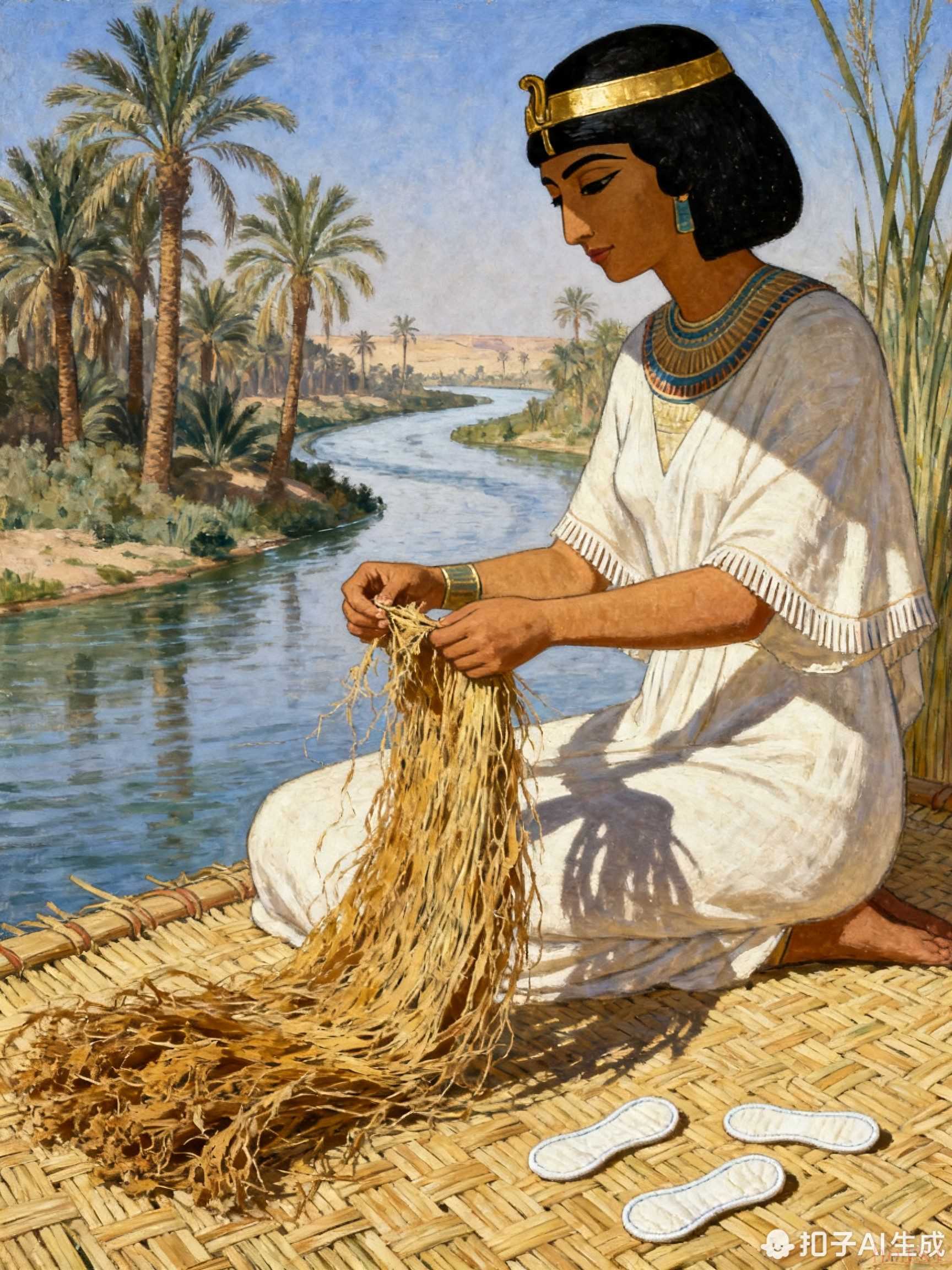在尼罗河畔的古埃及神庙中,女祭司正将晒干的纸莎草茎髓在掌心反复搓揉。纤维在指腹间逐渐软化,形成富有韧性的长条——这种诞生于尼罗河三角洲湿地的植物,不仅承载着文明的书写,更成为女性经期管理的最早见证。公元前 1550 年的医学文献《康氏纸草书》中,"子宫净化术"的记载暗示着,这种对纸草的加工并非简单的材料利用,而是蕴含着早期文明对女性生理周期的系统性认知。