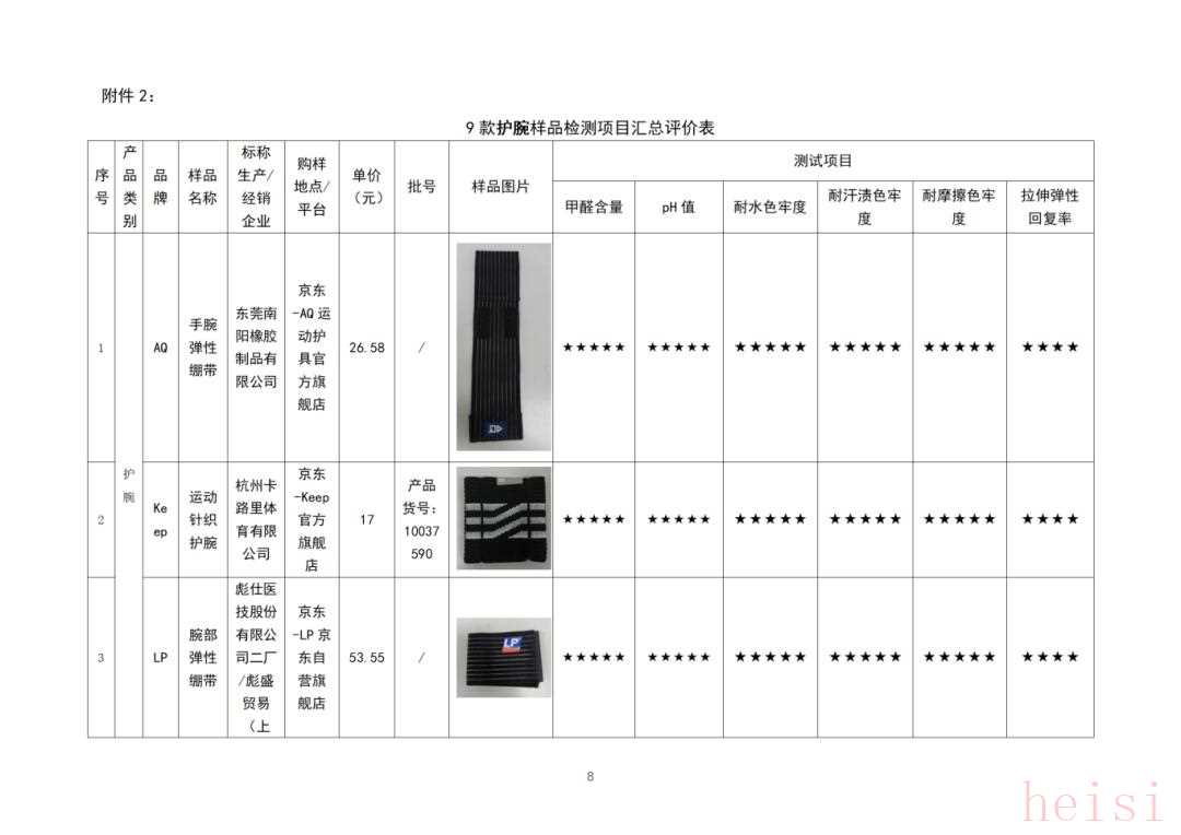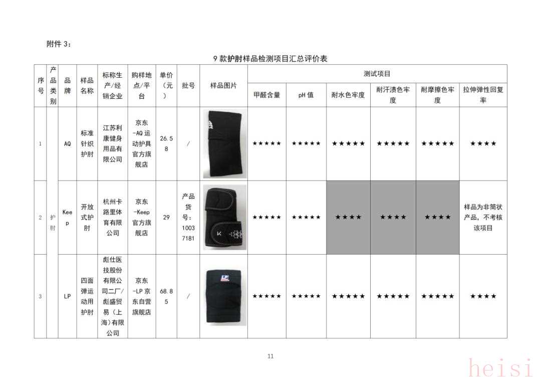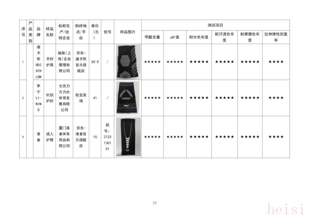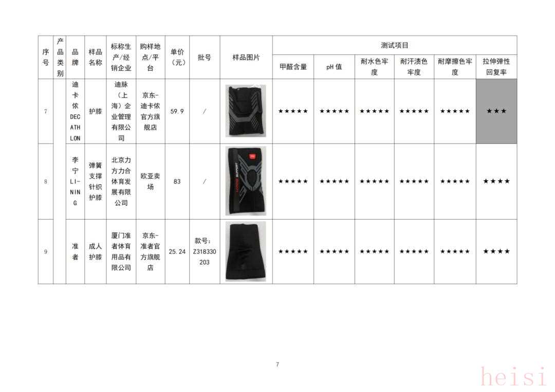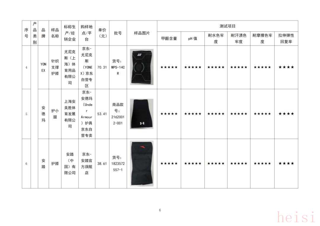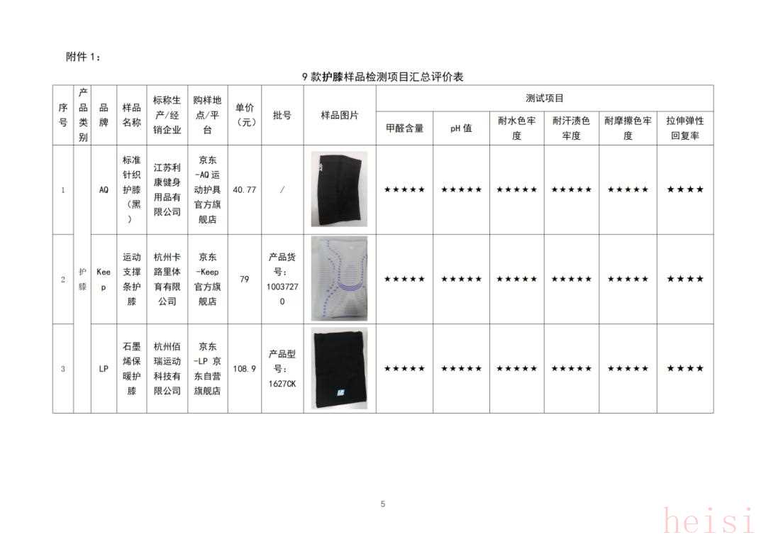 经测试,本次比较试验27款针织运动护具样品的甲醛含量均未检出,测试结果符合GB 18401—2010 A类要求,均评为5星。(详见附件)