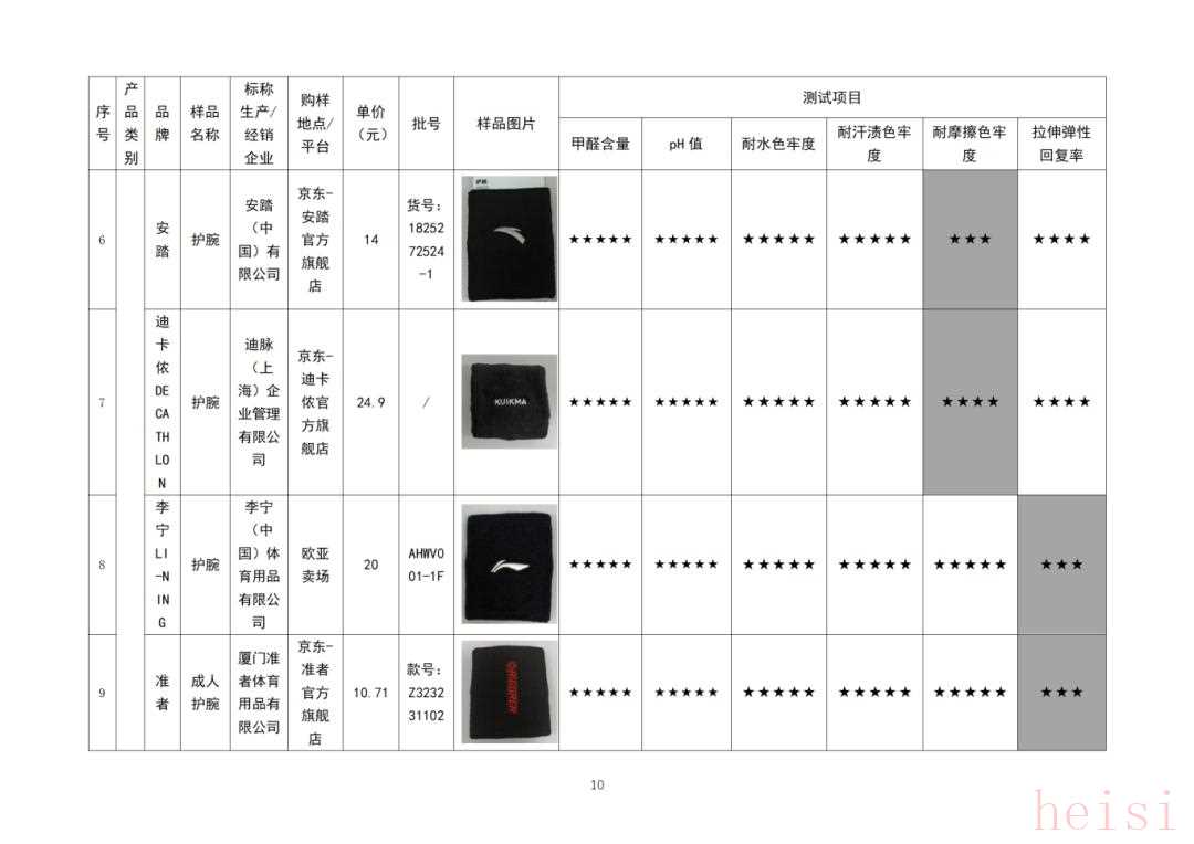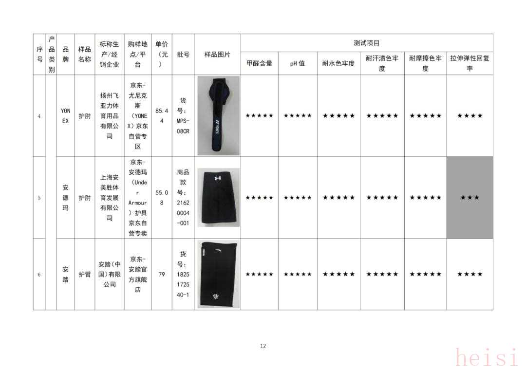 经测试,本次比较试验27款针织运动护具样品的pH值范围为5.8~7.1,测试结果均符合GB 18401—2010 A类要求,按照划分要求均评为5星。(详见附件)