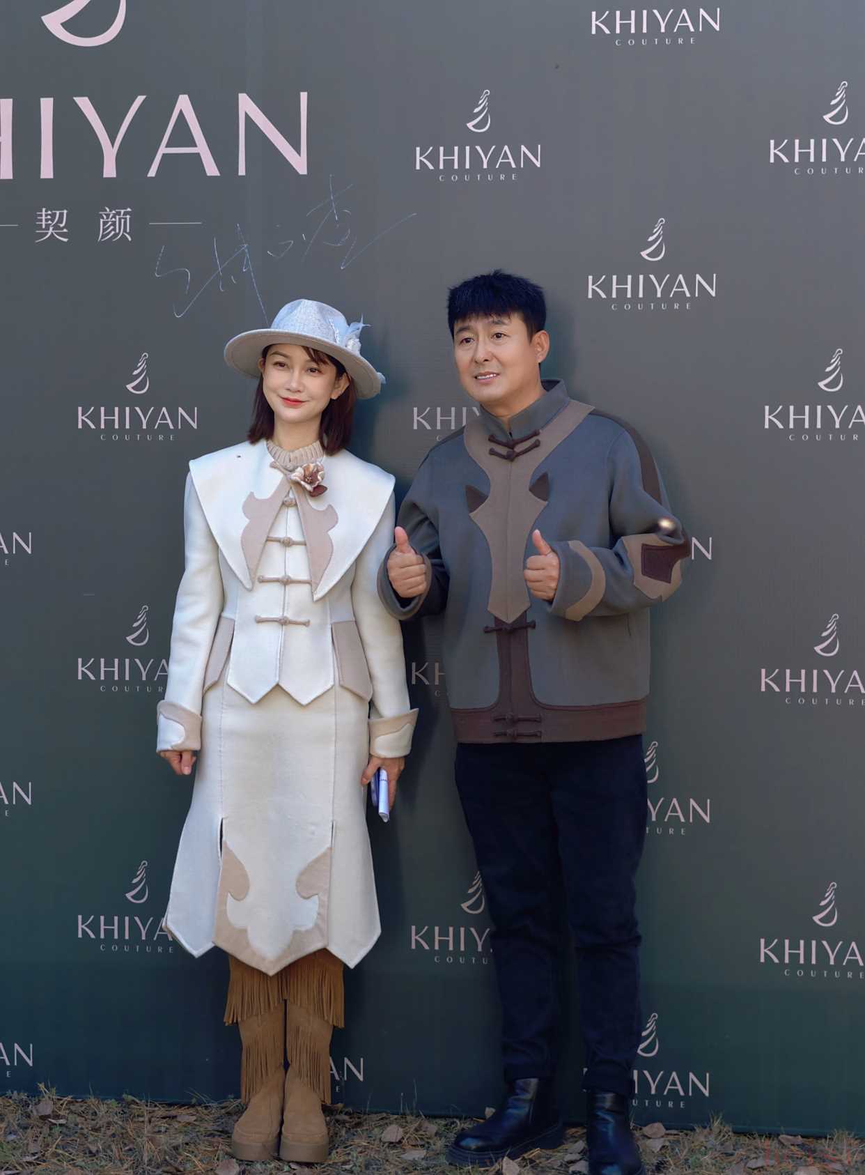 9月28日,契颜KHIYAN 2025秋冬系列发布举行。图为姜心与著名音乐制作人、呼伦贝尔形象大使包胡尔查合影。