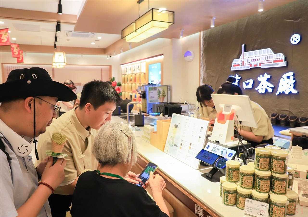 记者留意到,门店专设的新式茶饮体验区,吸引不少居民前来尝鲜。这里有匠心调制的冷萃宜红工夫茶,有自主冲泡的茉莉花茶,顾客能亲手参与冲泡过程,感受花香与茶韵的交融,还有热乎的釜煮青米砖茶。“冷萃的宜红茶,口感清冽甘醇,十分惊艳味蕾。”市民胡女士表示,自己平常对冷泡茶有所研究,“夏日喝上这么一口,感觉很清爽”。