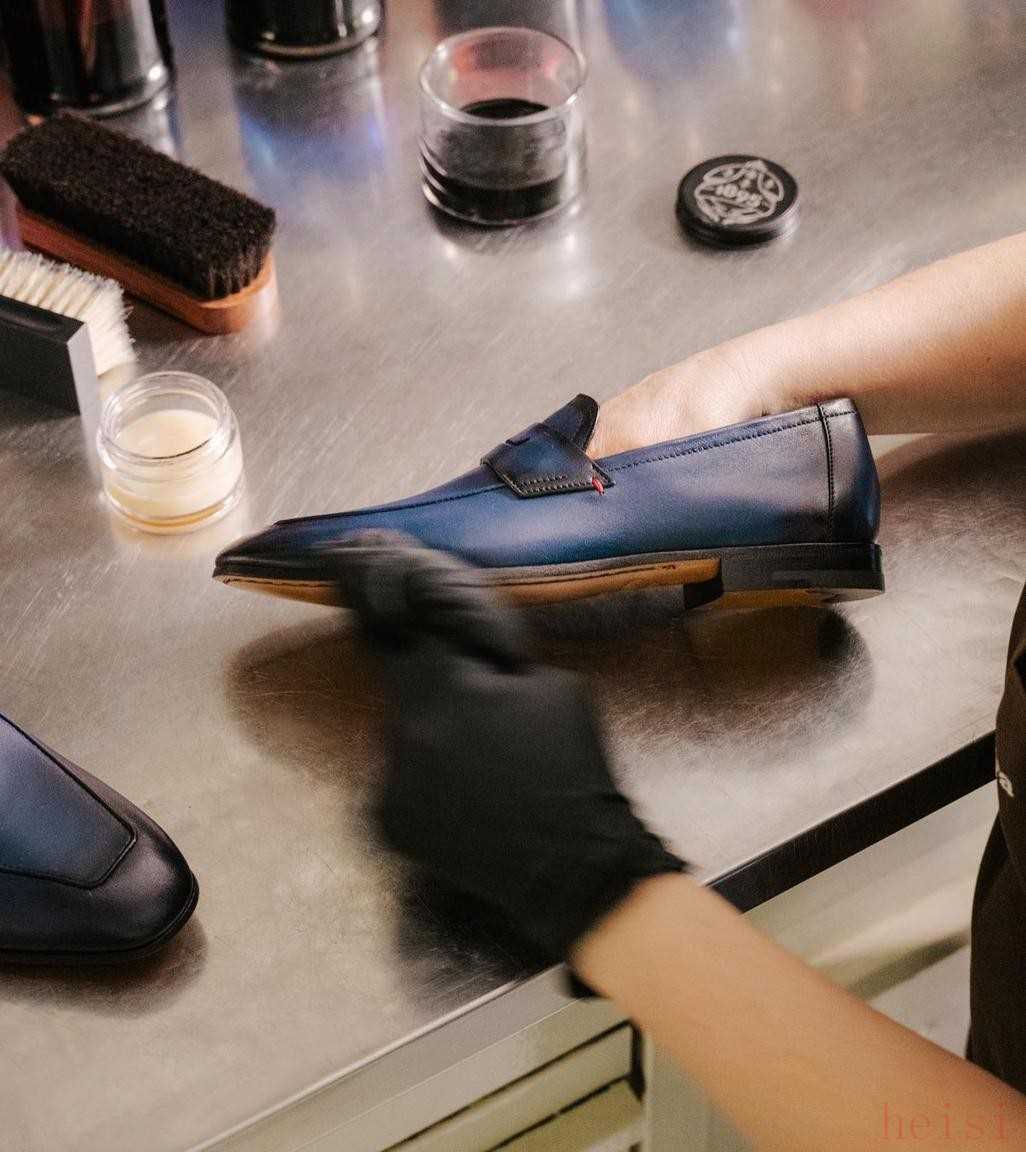 Berluti懂得“少即是多”,年产定制鞋限制在两千五百双,订单再多排期往后挪,绝不加班催货。产能像葡萄酒老窖,急不得,急就坏味。Patina染色需要工匠边擦边晾,颜色深浅全靠经验;鞋底缝线要藏在看不见的位置,针脚对得比量贩店的珠宝还细。穿过一季后,再送回巴黎翻新,师傅重新上油上色,鞋子像从头回炉。品牌后来索性把这套保养课程拍成线上视频,客户在家自己擦,也像在参加开光仪式。