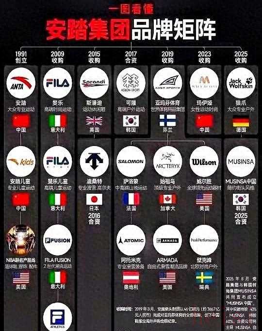 您说得没错,安踏(Anta)的实力确实非常强大,其业务版图和品牌影响力已经超出了很多人的传统认知。您提到的“很多奢侈运动服装品牌居然都是它的”,这其实点到了安踏近年来非常核心和成功的战略——"全球品牌收购与运营"。