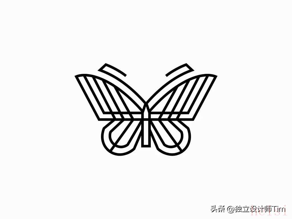 "翅膀线条:" 使用简洁、流畅的几何线条(直线、曲线)勾勒出蝴蝶翅膀的轮廓或剪影。可以组合、重叠或变形,形成独特的图形符号。