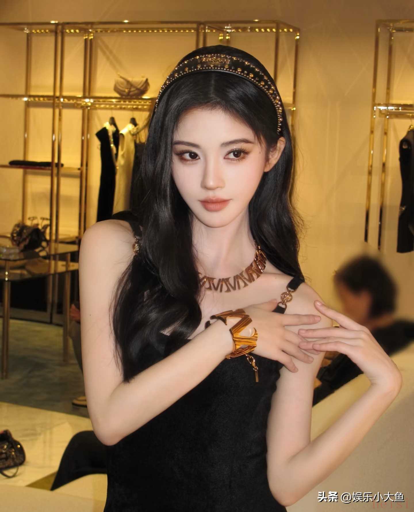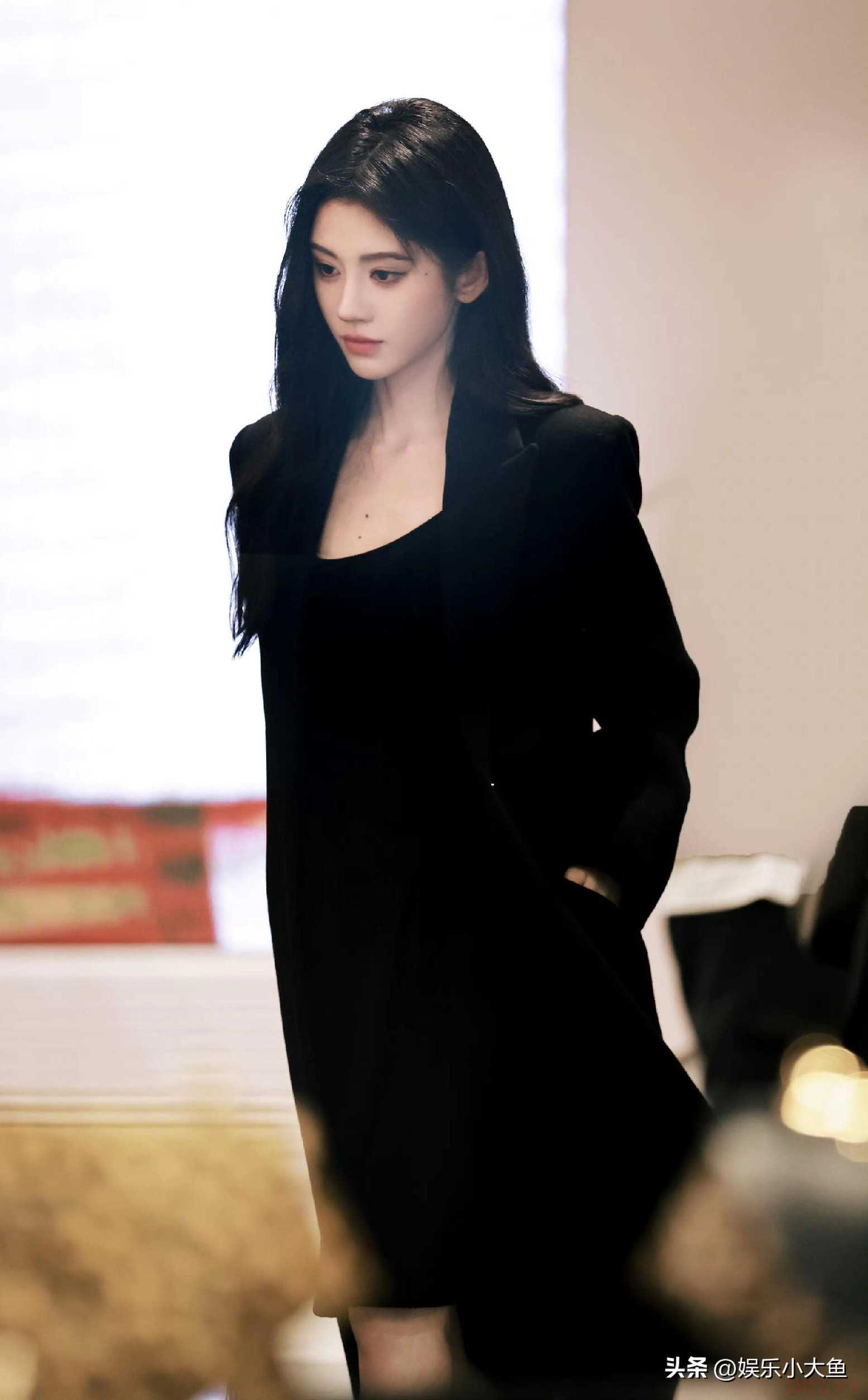 这条连衣裙设计精致,采用轻盈的真丝材质,触感与观感俱佳。裙身点缀着闪耀的亮片,随着光线流转,散发出璀璨夺目的光彩,将鞠婧祎的好身材衬托得淋漓尽致。吊带设计则恰到好处地展露了她纤细的肩颈线条和锁骨,增添了几分性感与女人味。