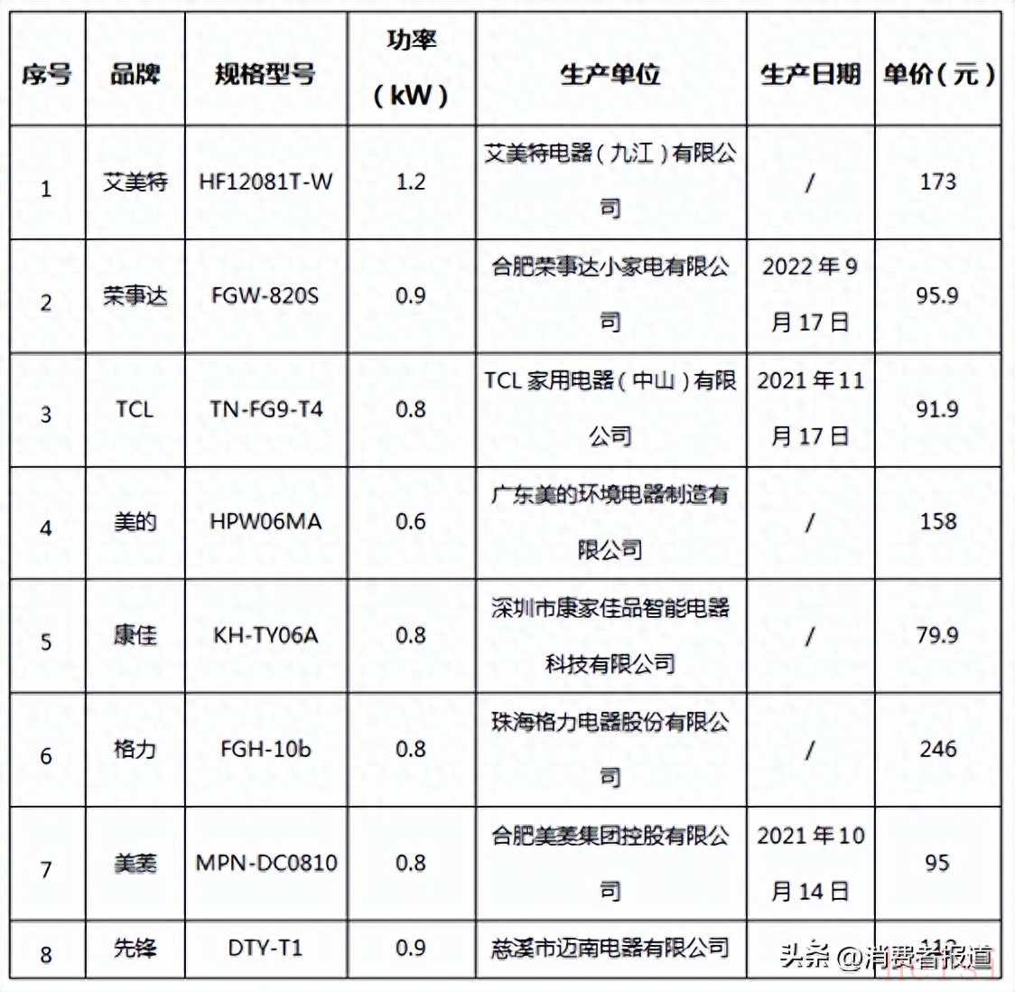 在今年,浙江省消保委、金华市消保委、永康市消保委联合开展了取暖器比较试验,选取了康佳、格力、艾美特、荣事达、先锋、美菱、TCL、美的等八个知名品牌的较畅销款式,比较试验涵盖了大家关心的安全指标、辐射均匀性、辐射热距离等项目,我们看看各品牌的表现吧。