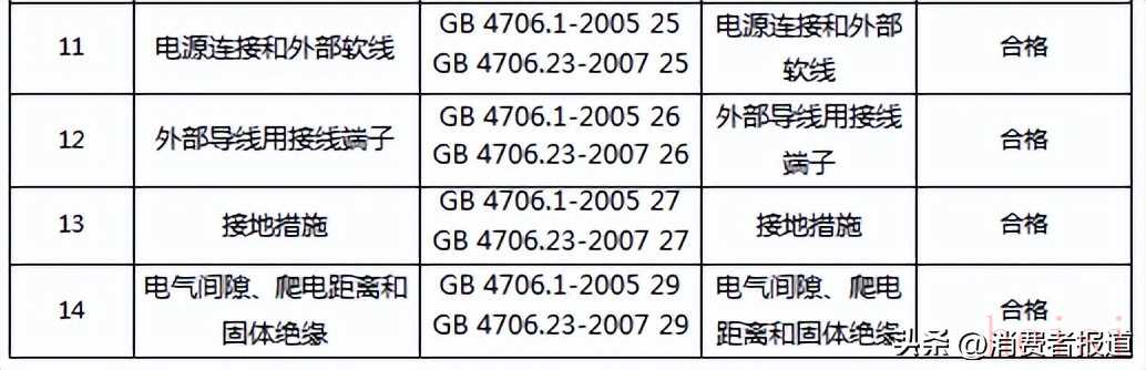 8款小太阳取暖器检验结果均符合国家标准。按照表2的14个项目,依据GB 4706.1-2005《家用和类似用途电器的安全 第1部分:通用要求》和GB 4706.23-2007《家用和类似用途电器的安全 第2部分:室内加热器的特殊要求》对8款产品进行了检验。
