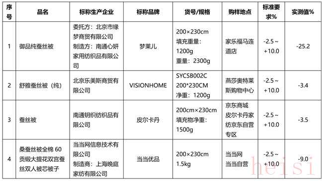 标称商标为“皮尔卡丹”、“当当优品”等4种样品填充物质量偏差率不符合标准规定。