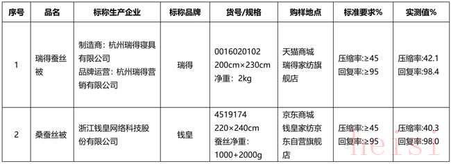 标称商标为“瑞得”、“钱皇”的2种样品的压缩回弹性低于标准规定。