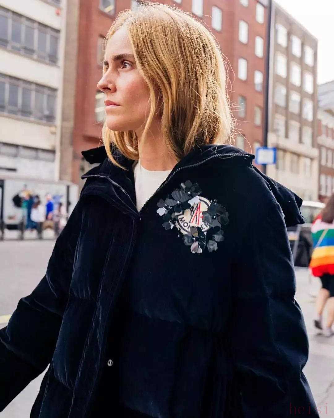 除了从颜色上下手,还可以在材质上突破。丝绒羽绒服这两年越来越火,和普通羽绒服相比,更温暖又有复古感。