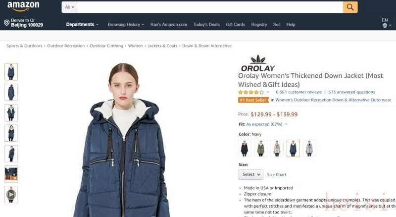 美国CNBC网站报道称,售价129.99美元的Orolay羽绒服在社交媒体上“刷屏”后,成为美国亚马逊(Amazon)服装类线上销量冠军,现在直接被称为“亚马逊大衣”(Amazon coat)。