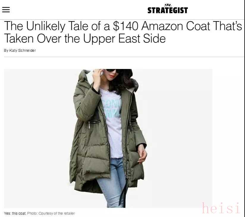 据美媒报道,中国一个羽绒服品牌在美国电商网站亚马逊上成爆款,被称为“亚马逊外套”(Amazon coat),纽约街头随处可见穿着这件羽绒服的人。
